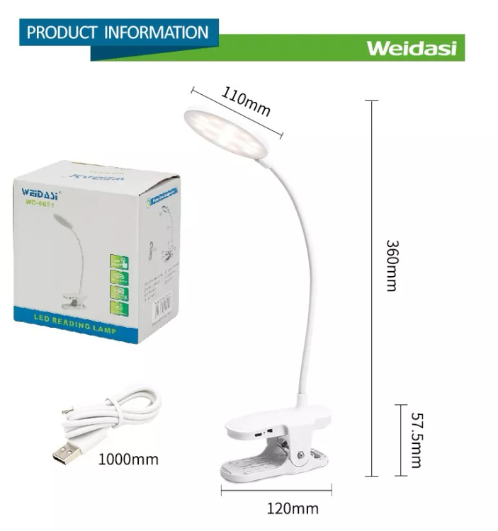 چراغ مطالعه ویداسی مدل 6051 یک چراغ مطالعه شارژی با طراحی مدرن و زیبا است. این چراغ دارای گیره نگهدارنده است که امکان نصب آن را روی میز کار یا تخت فراهم میکند. بدنه این محصول انعطافپذیر است و دارای کلید روشن/خاموش فیزیکی و لمسی است .