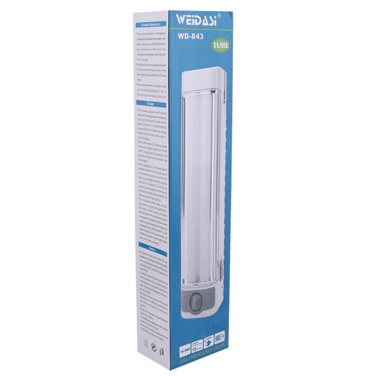 چراغ اضطراری Weidasi مدل WD-843 یک وسیله کاربردی مناسب در طول سفر، کوهنوردی، قطعی برق و... وسیلهای کاربردی است. این چراغ اضطراری دارای SMD است که باعث عمر طولانی و صرفه جویی انرژی میشود. 56 تا SMD این چراغ اضطراری باعث روشنایی بسیار خوبی میشود و میتوان به راحتی از آن به عنوان یک چراغ مهتابی استفاده کرد و همچنین میشود نور آن را تنظیم کرد. از آن دسته ابزاری است که حتی در خانه هنگام خاموشی برق بسیار کار آمد خواهد بود و نور مناسبی تا روشن شدن دوباره لامپ ها فراهم می نماید این چراغ اضطراری سبک ، بلند و قابل نصب بوده است و حتی میشود به راحتی آویزان کرد. این چراغ دارای باتری 3000mA است و قابلیت بیش از 500 بار شارژ و بازیافت را دارد و به راحتی و سریع شارژ میشود و حداکثر شارژی که میشود نگه داشت تا 8 ساعت است.