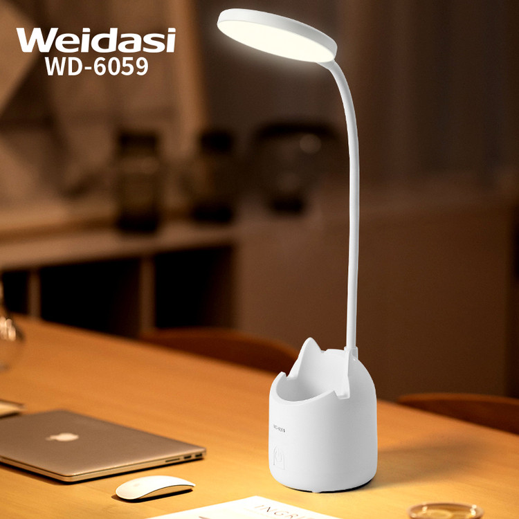 چراغ مطالعه مدل WD-6059 یک چراغ مطالعه رومیزی شارژی است که توسط برند ویداسی (Weidasi) تولید شده است. این چراغ دارای ۲۰ عدد لامپ LED SMD با نوردهی بالا است و از پلاستیک فشرده ساخته شده است. باتری داخلی آن ۱۲۰۰ میلیآمپر ساعت ظرفیت دارد و از طریق پورت Micro USB شارژ میشود.