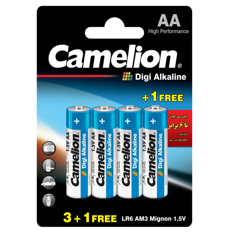 باتریهای دیجی آلکالاین دوام زیادی داشته و تا 6 برابر بیشتر از باتریهای زینک-کربن عمر میکنند. از این باتریها میتوانید برای استفادههای عمومی مانند دوربینهای عکاسی، پخشکنندهی موسیقی، ریشتراش، کنترل تلویزیون و انواع دیگر وسایل برقی استفاده کنید. این باتریها مصارف عمومی دارند؛ اما بهتر است از آنها برای وسایلی که به جریان برق زیادی نیاز دارند استفاده کنید. این پکیج شامل بر 12 پک 4 عددی (مجموعاً 48 عدد) باتری قلمی دیجی آلکالاین کملیون میباشد.
