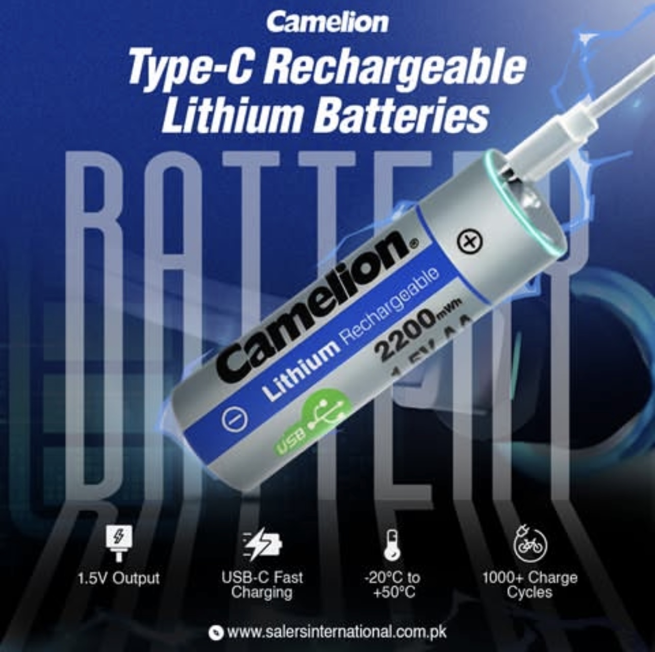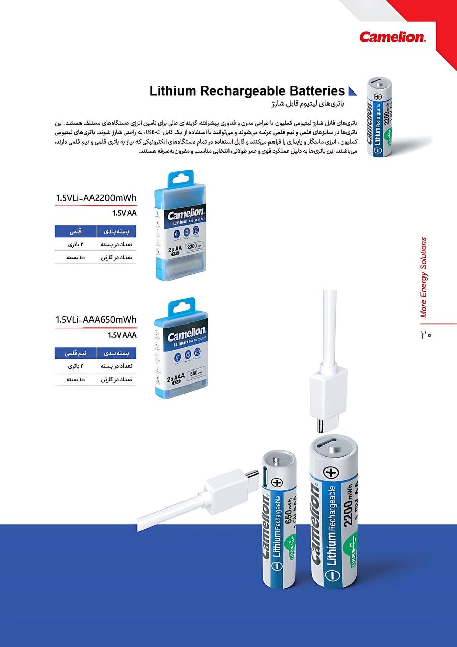 باتری قلمی شارژی لیتیوم 1.5 ولت 2200 ( USB)