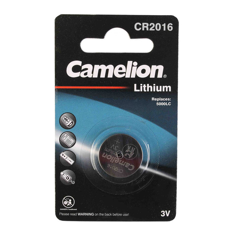 باتری سکه ای کملیون مدل CR2016 دارای قطر 20 میلی متر و ضخامت 1.6 میلی متر میباشد . بسته بندی این محصول به صورت کارتی بوده و تکنولوژی ساخت آن لیتیوم میباشد.